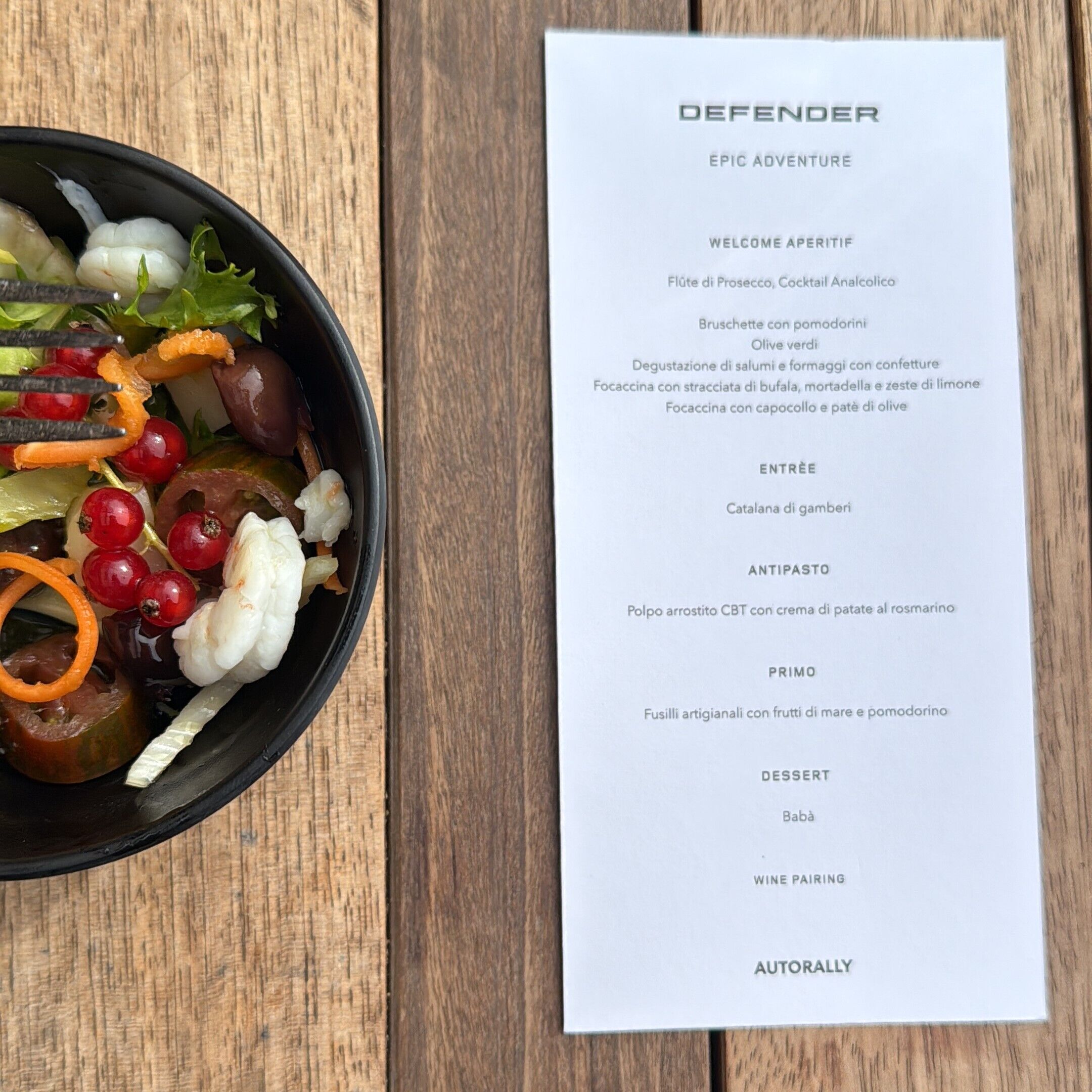 Dopo le attività all'aria aperta, i partecipanti si sono riuniti presso l'Ammot Cafè per un'esclusiva degustazione di un menu elaborato ad hoc per l'evento. Piatti raffinati e prelibatezze locali hanno deliziato i palati, accompagnati da una selezione di vini pregiati. Un momento conviviale per condividere le emozioni della giornata e celebrare la passione per il Defender.