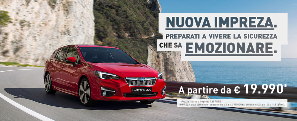 *Prezzo riferito a Impreza 1.6i Pure. Ciclo combinato: consumi da 6.2 a 6,4 (l/100Km); emissioni CO2 da 140 a 145 (g/Km).
