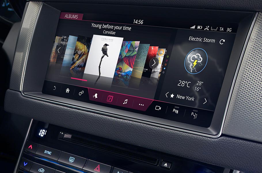 ![]() | Resta connesso e sfrutta al massimo le opzioni d'intrattenimento con i sistemi di infotainment di XF. Ogni XF è dotata di serie di sofisticate tecnologie touch tramite il sistema di ultima generazione Touch Pro, disponibile come optional*. Reattive, intuitive e perfettamente integrate, le tecnologie di Jaguar offrono soluzioni pensate per migliorare la tua esperienza di guida. |